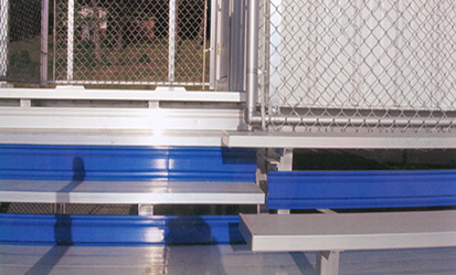 Elevated Bleachers is an industry term used to describe a type of bleacher that when seated on the first row you’re feet are at the same height as the front walkway. The elevation depends on what your specific needs are and in most cases will require stairs, ramps & handrails. Non-Elevated Bleachers simply means that when sitting on the first row your feet are at ground level.