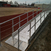 Angle frame grandstands are designed to be permanently anchored to a concrete foundation. The frames, braces and understructure are welded aluminum angle which offer years of maintenance-free service. All bleacher planking is extruded aluminum. Seat planks have a clear anodized finish, while footboard planks are mill finished. Handrails are smooth brushed aluminum. One of the most exciting customizations to our bleacher systems including grandstands is the ability to offer our clients colored riser boards. Riser boards can be ordered to match your organizations colors. Powder coating is a coloring method used in the aluminum industry with several desirable characteristics such as good resistance to impact, and excellent UV and corrosion resistance. Adding colored riser board to your grandstand can really leave a lasting impression with fans and distinguish your stadium from the competition.